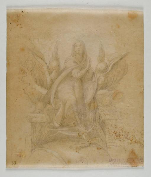 - NOTIZIE STORICO CRITICHE Il disegno è stato attribuito a Giovanni Sanguinetti negli ultimi anni (CASARIN, 2003, pp.150-151), sulla base dell'analisi della composizione e della tecnica. Sono state inoltre riscontrate evidenti consonanze con lo stile di Tommaso Minardi.
