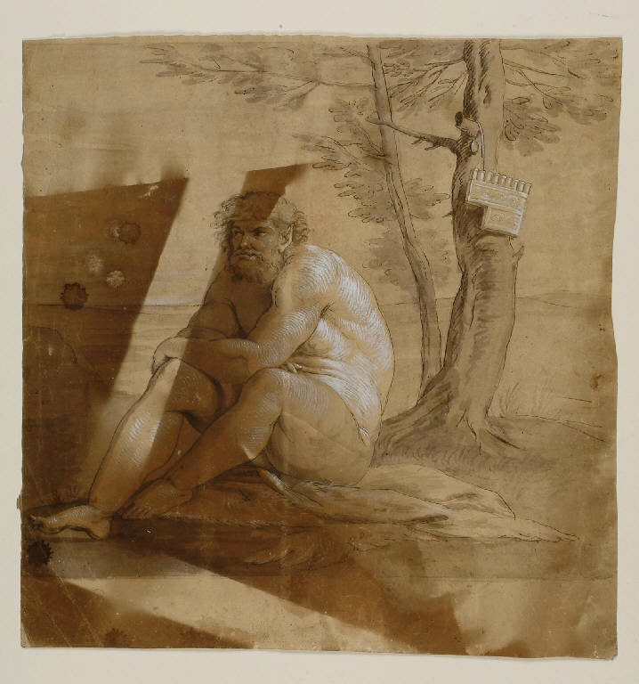 - NOTIZIE STORICO CRITICHE Gli studi più recenti hanno identificato il modello del disegno nell'opera di Annibale Carracci. Esso però riprende la figura di Sileno reinterpretandola come Pan.