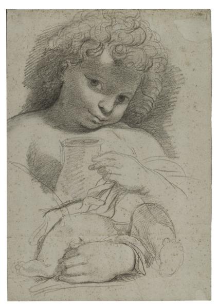 Ritratto di bambino a mezzo busto, studi di mano femminile e di gambe di bimbo