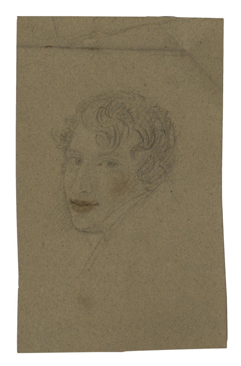 - NOTIZIE STORICO CRITICHE Il titolo del disegno, già identificato nella scheda inventariale come Ritratto di Ugo Foscolo, andrebbe rivisto alla luce delle indicazioni di Francesco Leone (Andrea Appiani pittore di Napoleone, Milano 2015, pp. 67-68). Leone ha espunto dal corpus delle opere dell'artista il Ritratto di Foscolo della Pinacoteca di Brera, una decisione basata sull'assenza, nelle Carte Reina e nella biografia di Beretta del 1848, di notizie su eventuali opere di Appiani dedicate al poeta italiano. Le stesse motivazioni - assenza di fonti e scarsa somiglianza fisionomica - possono giustificare la modifica del titolo per il disegno del Civico Gabinetto dei Disegni.