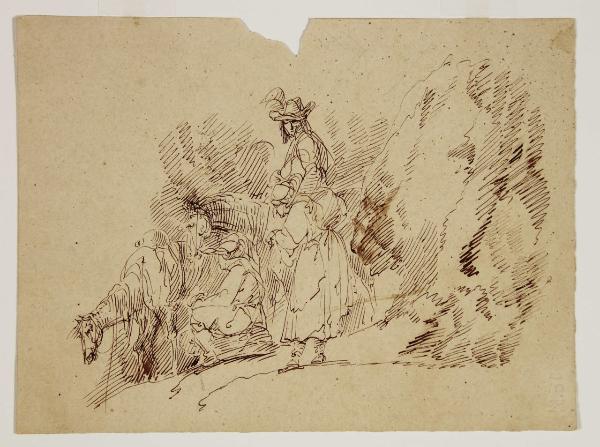 Tre figure con due cavalli. Tre figure con due cavalli