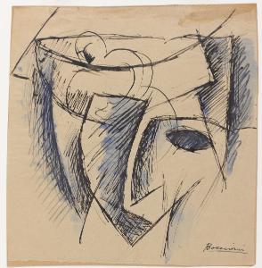 matita, inchiostro nero a penna e acquerello blu su carta
