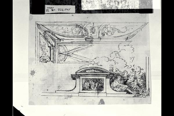 Studi per decorazioni parietali: Fastigio con sculture; Progetto per quadratura di soffitto