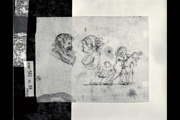 Busti di vecchio e vecchia e tre putti ludenti