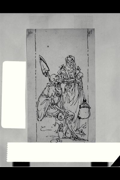 - NOTIZIE STORICO CRITICHE Il foglio è un disegno preparatorio del pannello con "Due contadini" del ciclo della chiesa bergamasca di Santa Grata inter Vites.\n