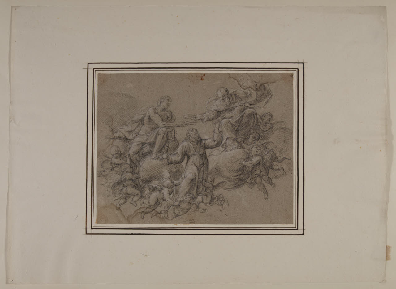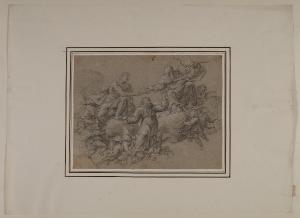 - NOTIZIE STORICO CRITICHE Il disegno fa parte di un nucleo di 34 fogli, alcuni dei quali noti agli studi, tutti realizzati a matita nera e gessetto bianco su carta grigia (eccezion fatta per uno, a matita rossa e gessetto bianco sempre su carta grigia). Tra questi, alcuni recano un'iscrizione attributiva di Giuseppe Bossi e un numero a penna; a livello stilistico (come confermato anche nei casi dei disegni pubblicati), la serie è ascrivibile alla mano del pittore barocco lombardo Antonio Busca. \nIl foglio è stato identificato da G. Rossi (1959) come preparatorio per l'affresco con questo soggetto nella cappella XX del Sacro Monte d'Orta; in aggiunta rispetto a questo Bruzzese (2017) ha segnalato nel foglio inv. 149/29 una variante di studio.\nNell'inventario del 1814 dei beni di Alberico XII Barbiano di Belgioioso (trascritto in M. Forni, "Abitare da principe. Le residenze e le collezioni di Alberico XII Barbiano di Belgiojoso", 2020), nella Cartella G "che contiene i disegni antichi" sono registrati "33 tutti del Busca", stimati £ 66.