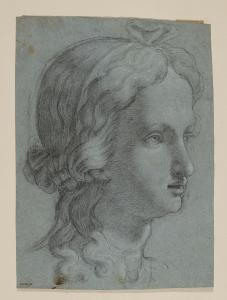 Testa femminile di tre quarti a destra. Testa femminile di tre quarti a destra