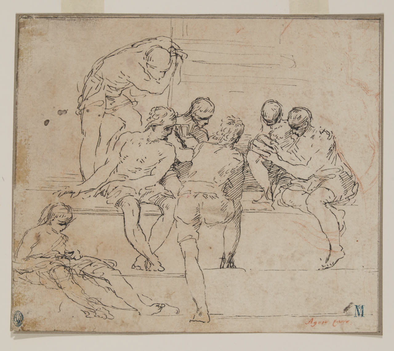 penna inchiostro nero e tratti di sanguigna su carta
