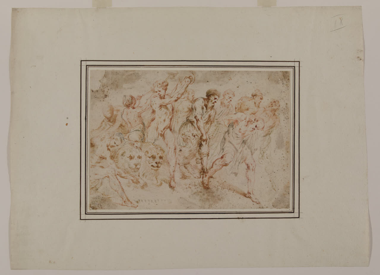 - NOTIZIE STORICO CRITICHE Nel 1944 Nicodemi attribuisce questo nucleo di undici disegni alla maturità di Giovanni Battista Castiglione, detto il Grechetto (curiosamente, non pubblica il foglio Au. D 65/13). Nel 2000 Morandotti inserisce i dodici disegni nel catalogo di Antonio Lagorio, tra i seguaci del genovese Valerio Castello. Notevole è la sintonia tra l'attività da disegnatore di Lagorio e le opere grafiche del Grechetto, come evidenziato non solo dai disegni del Castello Sforzesco, ma anche da un "Sant'Antonio che benedice una giovane donna inginocchiata" a pennello e olio su carta, passato all'asta da Sotheby's di New York il 12 gennaio 1994 (come opera genovese del Seicento) e rivisto nell'asta Finarte di Milano il 22 novembre 2000 (attribuito al Grechetto), appartenente quest'ultimo a padre Sebastiano Resta (Morandotti 2000). Tutti questi tredici fogli sono, secondo Morandotti, attribuibili a Lagorio per caratteristiche comuni quali la simile tecnica esecutiva, le tipologie dei volti, le scelte cromatiche. Nella scheda digitale è stata inserita, in epoca imprecisata, un'attribuzione dubitativa al pittore barocco genovese Giovanni Battista Merano (1632-1698).