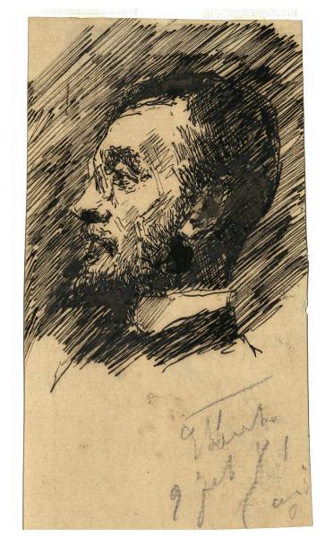 - NOTIZIE STORICO CRITICHE Cremonese di nascita, Francesco Colombi Borde, fu pittore, disegnatore e incisore. Attivo a Milano e Cremona sin dai primi anni 1870, realizzò ritratti e vedute di interni. Negli anni successivi e fino alla fine del secolo, partecipò alle esposizioni milanesi anche con incisioni, quadri di genere e paesaggi. Già appartenuto alla collezione di Pompeo Mariani, questo disegno, firmato e datato 9 febbraio 1881, raffigura una testa maschile vista di profilo rivolta verso sinistra.