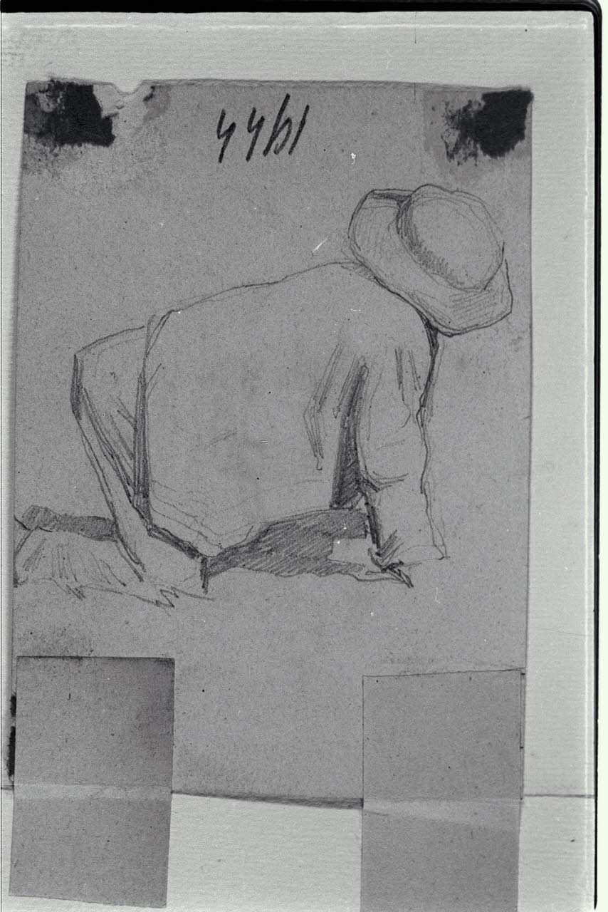 Schizzo per un giovane con cappello inginocchiato