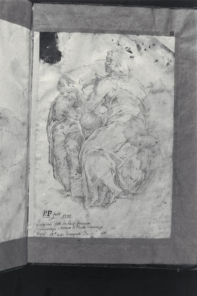 - NOTIZIE STORICO CRITICHE L'invenzione rielabora motivi michelangioleschi dalla volta della Cappella Sistina e si collega alle dodici sibille dipinte a guazzo per la chiesa ferrarese di San Cristoforo alla Certosa, oggi in deposito presso i Musei Civici di Arte Antica e la Pinacoteca Nazionale di Ferrara.