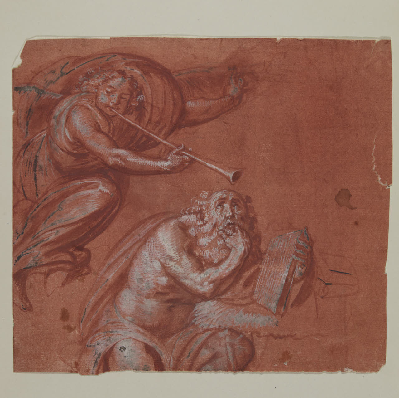 pennello rosso e biacca su carta preparata in rosso