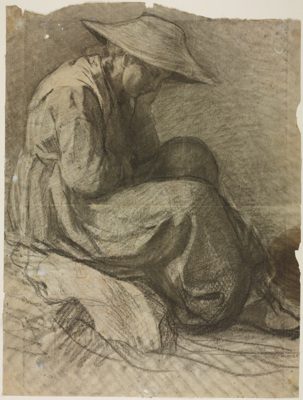 - NOTIZIE STORICO CRITICHE Il disegno in esame appartenne al pittore Giovanni Piumati, allievo prediletto di Antonio Fontanesi all'Accademia Albertina di Torino. Si tratta di uno studio preliminare per la figura della contadina seduta che compare nel dipinto "Novembre" del 1864 e oggi conservato presso la Galleria Civica d'Arte Moderna di Torino. Il tema dell'isolamento, tradotto nel silenzio dell'ampio paesaggio in cui è immersa la contadina, fu affrontato con successo più volte da Fontanesi, come nelle due versioni di "Solitudine" del 1875 e del 1876.