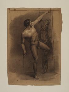 carta preparata bruna/ pietra nera/ sfumino/ biacca