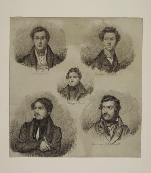 Cinque ritratti a mezzo busto: Antonio Caimi, Girolamo Viscardini, Giuseppe Barni, Guido Buffi, Domenico Guglielmetti