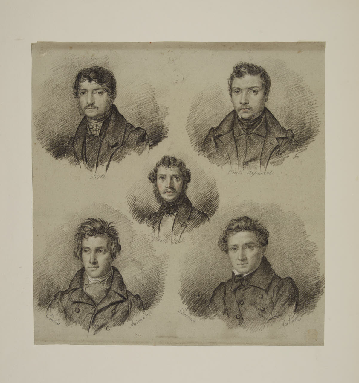 Cinque ritratti a mezzo busto: Testa, Carlo Arpesani, Raffaello Ponti, Giulio Arivabene, Giacomo Mortina