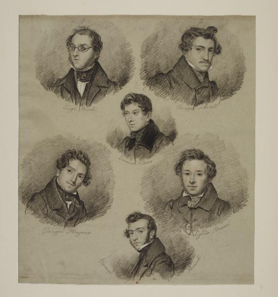 Sei ritratti a mezzo busto: Luigi Brechi, Giuseppe Sabatelli, Domenico Induno, Giuseppe Magonio, Egidio Annoni, Giovanni Bianchi