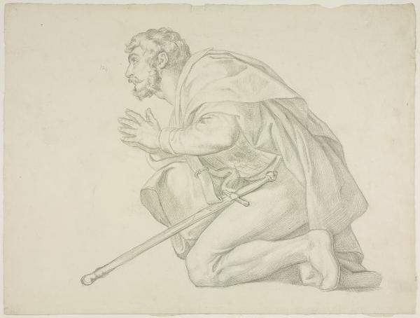 Studio dal cartone di Francesco Sabatelli: "Ezzelino da Romano inginocchiato ai piedi di sant'Antonio"