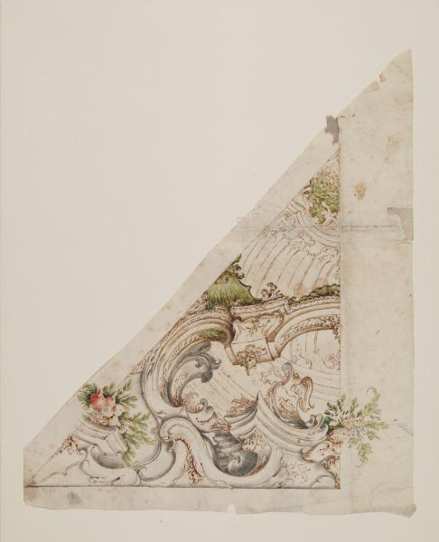 Particolari per la decorazione del Duomo di Monza: motivo architettonico con ornati e fiori