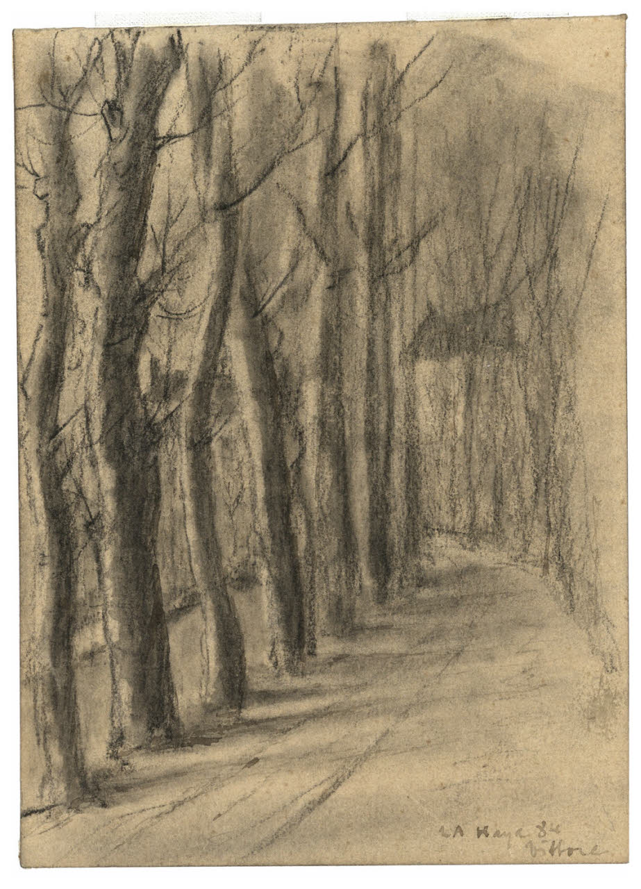 - NOTIZIE STORICO CRITICHE Il disegno in esame fa parte di una serie di schizzi raffiguranti pascoli e angoli di boschi osservati dal vero da Vittore Grubicy nei dintorni dell'Aja verso la fine del 1884 (Rebora 1995).