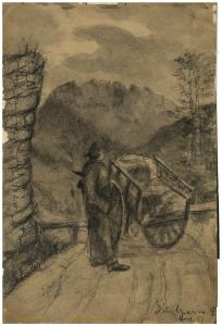 Paesaggio con uomo e carretto. Paesaggio con uomo e carretto