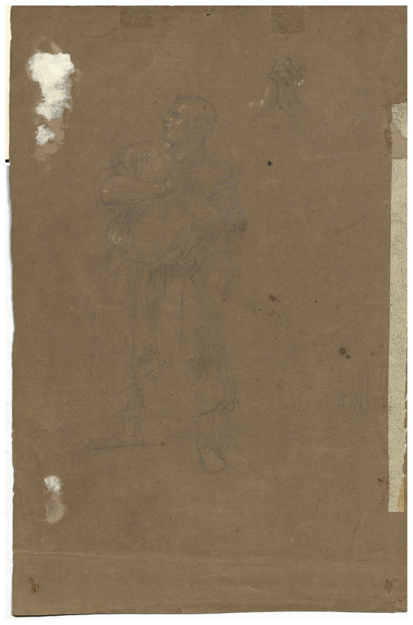 Figura stante di personaggio romano e studio di mani congiunte. Figura stante di personaggio romano e studio di mani congiunte