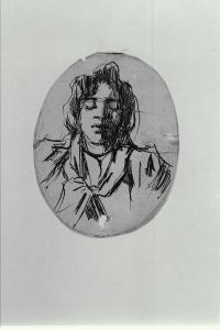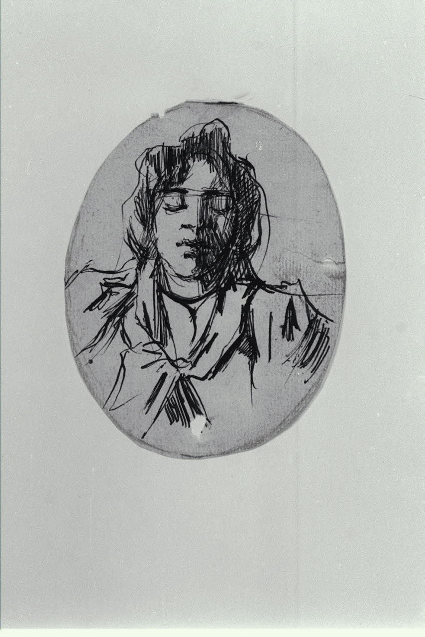 - NOTIZIE STORICO CRITICHE Il disegno raffigura una gabbrigiana, descritte da Diego Martelli come "una razza di donne fiere che esercitano il procacciatico tra il vicino piano di Cecina e la piazza di Livorno, portando in capo delle ceste enormi di mercanzia" (G. Matteucci, Lega. L'opera completa, Firenze 1987, p. 246, n. 294). Lega, a partire dalla metà degli anni Ottanta, frequentò, negli ultimi anni della sua vita, il Gabbro, un piccolo villaggio nell'entroterra livornese, di cui raffigurò spesso gli scorci e i suoi abitanti. In particolare, l'artista subì il fascino delle donne del luogo, ritratte in numerosi dipinti: spesso presentate con il capo avvolto in un fazzoletto annodato al collo, emanavano, pur nel contegno austero, fierezza e dignità. Il piccolo disegno a penna, pur non riferibile con precisione a un ritratto dipinto, conserva inalterata la medesima carica vitale che traspare dai ritratti di queste popolane.