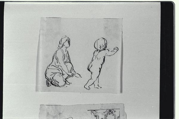 Schizzo di figura femminile inginocchiata e neonato