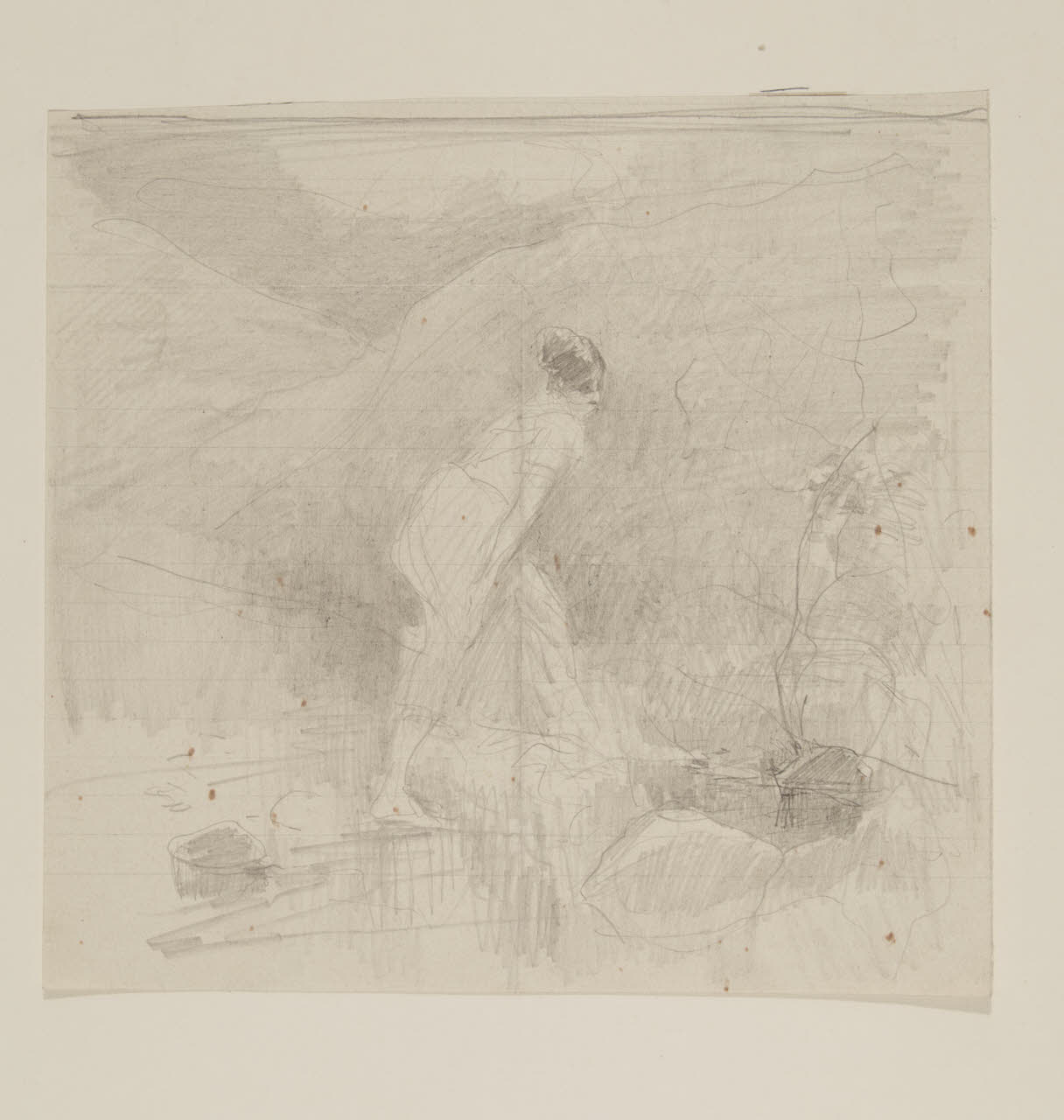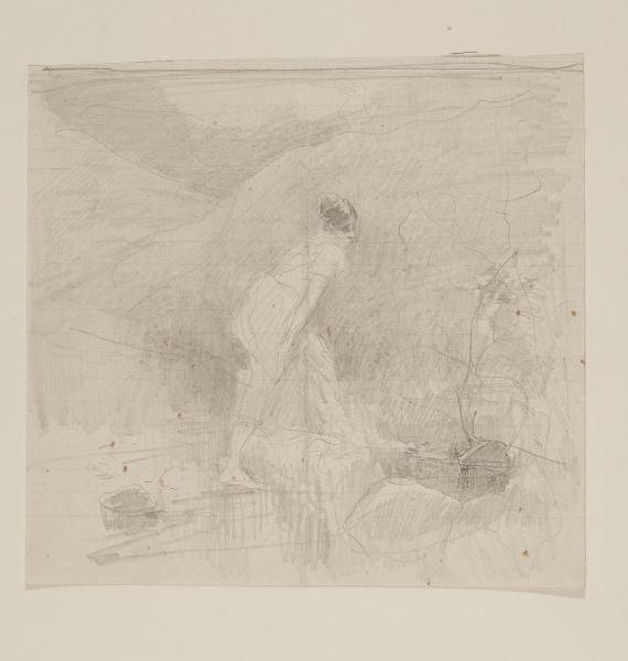 Figura femminile vicino ad un corso d'acqua