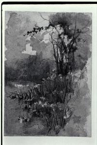 carta/ grafite/ pietra nera/ acquerelli (grigio, beige)