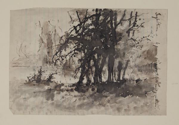 carta a righe/ penna e inchiostro/ pennello e inchiostro/ acquerellature