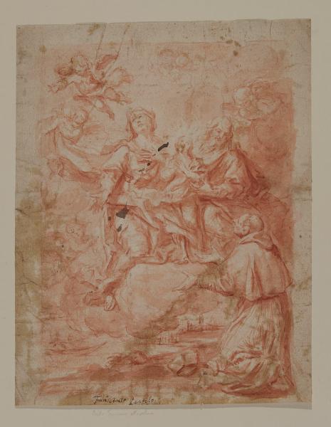 San Carlo in adorazione davanti alla Sacra Famiglia che gli appare tra nubi con angeli e cherubini