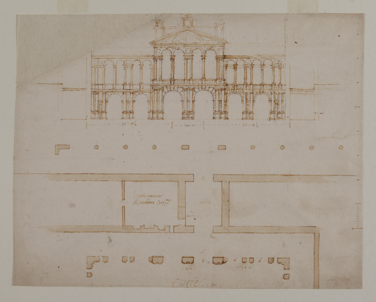Cortile per giostre nel Palazzo Ducale di Mantova, prospetto del lato corto e pianta parziale. Cortile per giostre; prospetto del lato corto e pianta parziale (Mantova, Palazzo Ducale)