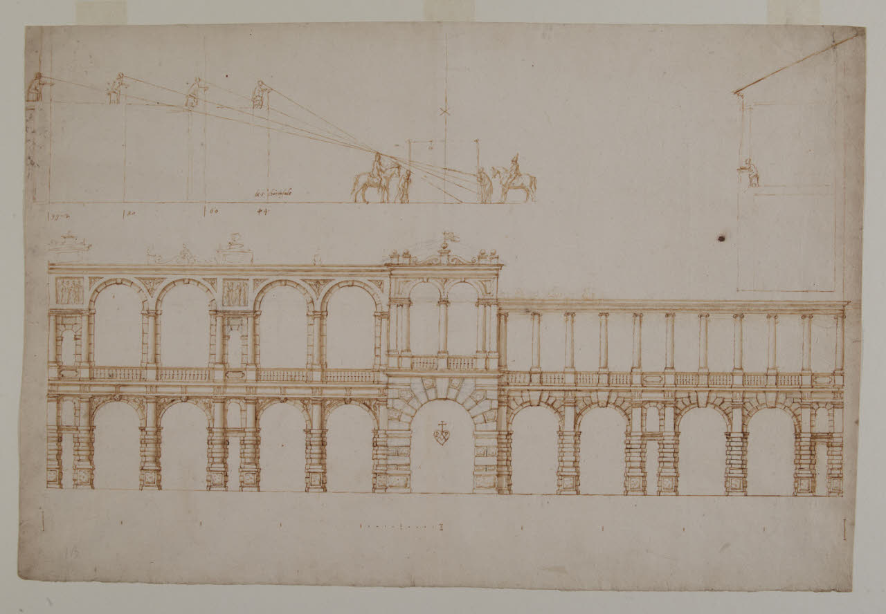 Cortile per giostre nel Palazzo Ducale di Mantova, portico e loggiato con varianti (e studi del punto di vista degli spettatori dal loggiato). Cortile per giostre, portico e loggiato con varianti (Mantova, Palazzo Ducale)