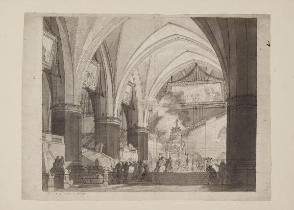 - NOTIZIE STORICO CRITICHE Il foglio è stato identificato come fondale per l'atto quarto dell'Amleto, rappresentato alla Scala nella stagione di Carnevale del 1817 (cfr. Corvi 2023).