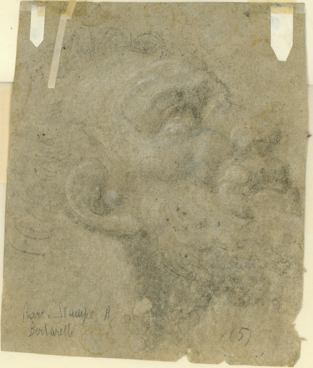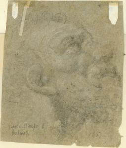 - NOTIZIE STORICO CRITICHE E' possibile riconoscere questo volto barbuto all'interno della grande tela con la Vocazione dei santi Paolo e Barnaba nella chiesa di S. Barnaba a Milano.\nC. Brouard ha evidenziato le differenze nell'esecuzione del ritratto del personaggio maschile barbuto che compare sulle due facce dello stesso foglio: mentre nel recto riconosce "la medesima sicurezza di tratto dei disegni coevi" del maestro, quello al verso (qui schedato) "modellato in trasparenza sul profilo del recto, sembra più macchinoso, meno espressivo", salvo poi ammettere un possibile intervento diretto di Peterzano in tempi diversi, a rielaborare lo stesso soggetto.