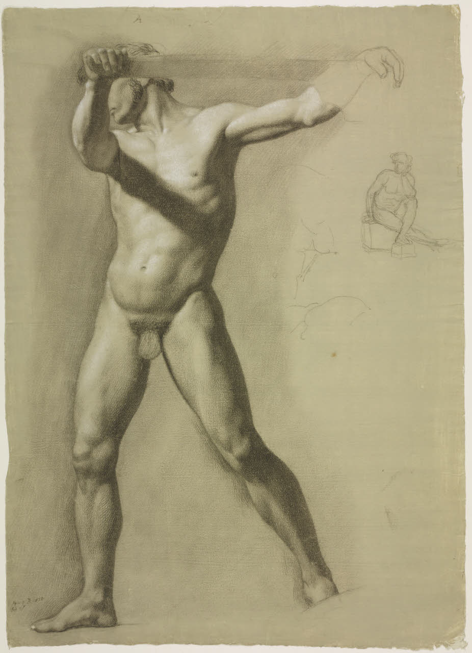 Studio accademico di nudo virile e bozzetto di nudo maschile seduto