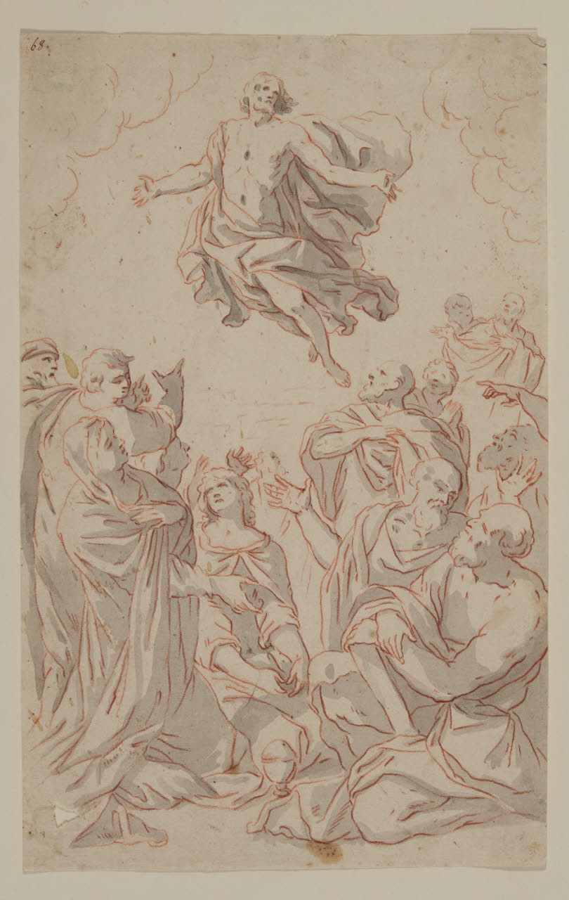 - NOTIZIE STORICO CRITICHE Tradizionalmente attribuito a Giovanni Battista Pittoni, questo disegno con una Trasfigurazione proviene dalla raccolta di Paolo Gaffuri. Una nota manoscritta in italiano sul verso del foglio ci informa che quest'ultimo sarebbe appartenuto in precedenza a sir Anthony Westcomb (?-6/12/1752), importante collezionista inglese di disegni e stampe di antichi maestri. Gli studi più recenti non hanno confermato l'attribuzione all'artista veneziano.