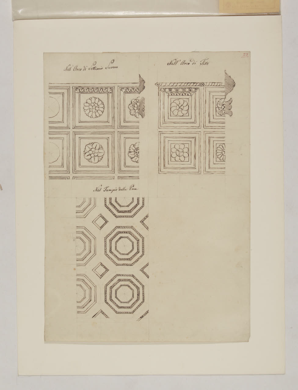 - NOTIZIE STORICO CRITICHE Le decorazioni del terzo disegno, relativo al Tempio della Pace, ricordano le volte cassettonate della Basilica di Massenzio