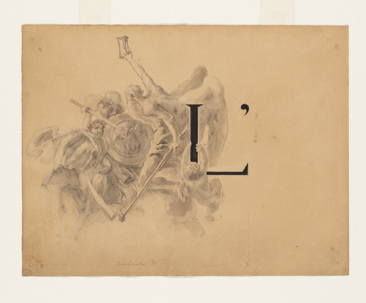 Lettera L - "L'Historia si può veramente deffinire una guerra illustre contro il Tempo...". Illustrazione per i Promessi Sposi - Introduzione, iniziale