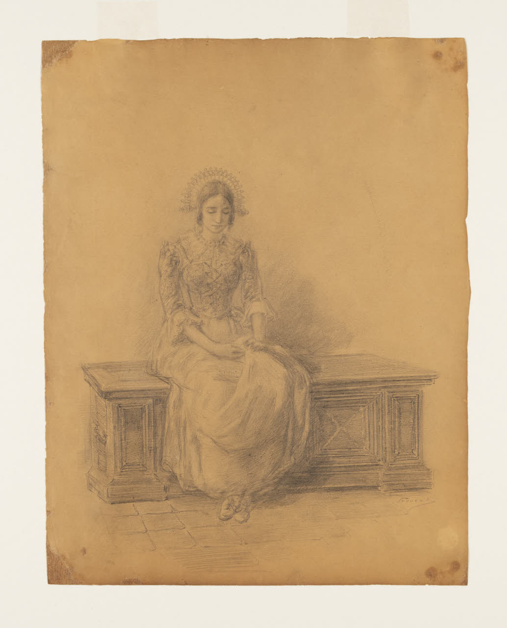 Lucia - "portava un bel busto di broccato a fiori (...) una corta gonnella di filaticcio". Illustrazione per i Promessi Sposi - Capitolo II