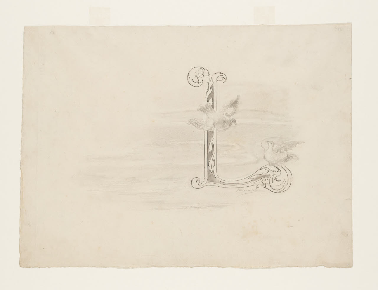matita; penna e acquarellature di inchiostro di china per l'iniziale su carta bianca