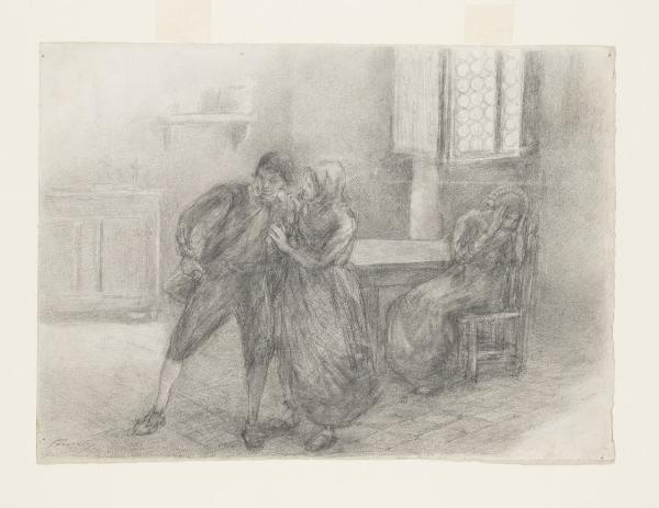 Renzo in casa di Lucia - "Ah birbone! ah dannato! ah assassino! - gridava Renzo". Illustrazione per i Promessi Sposi - Capitolo III