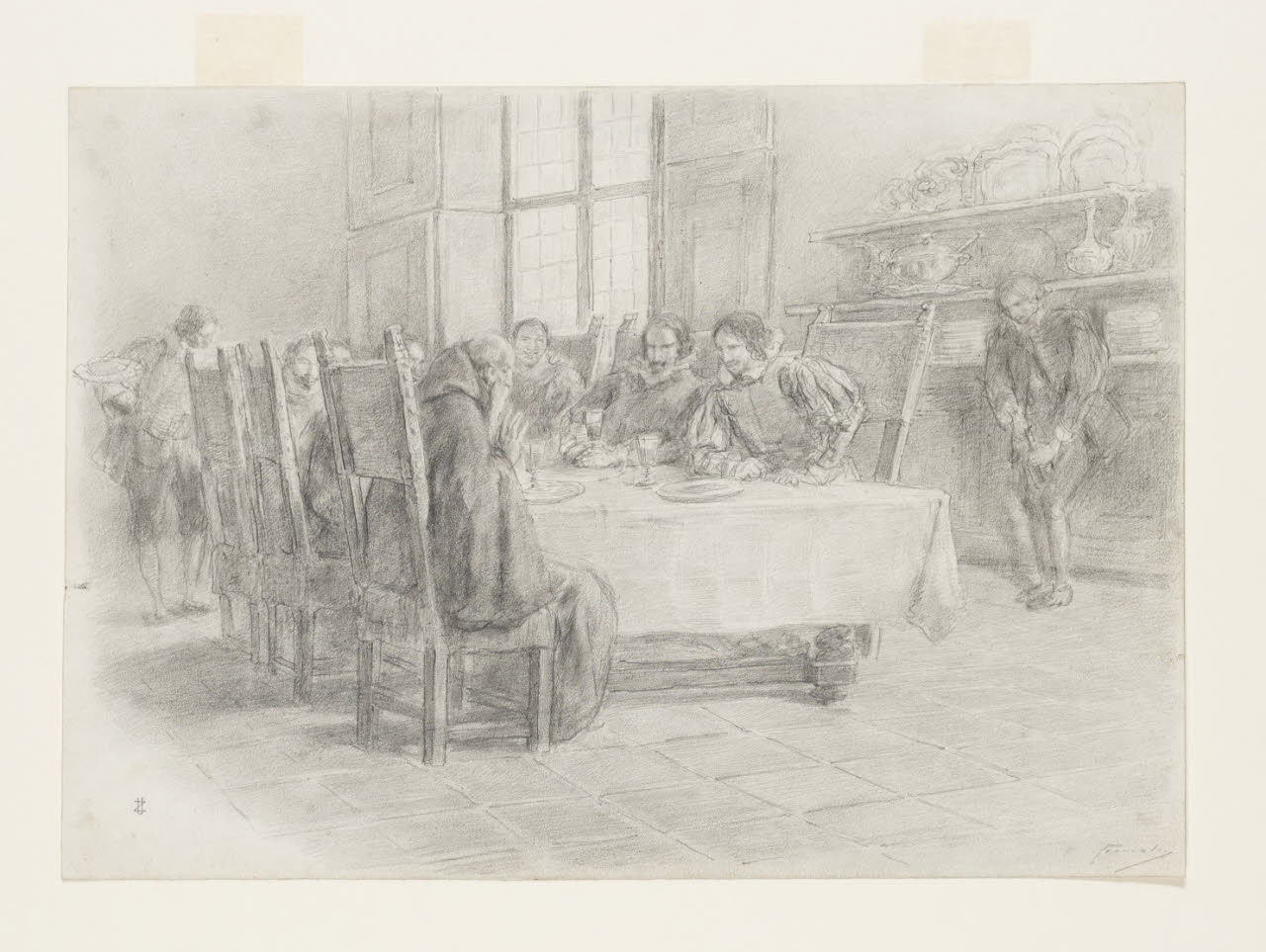 Padre Cristoforo alla tavola di don Rodrigo - "Non son cose di cui io mi deva intendere". Illustrazione per i Promessi Sposi - Capitolo V