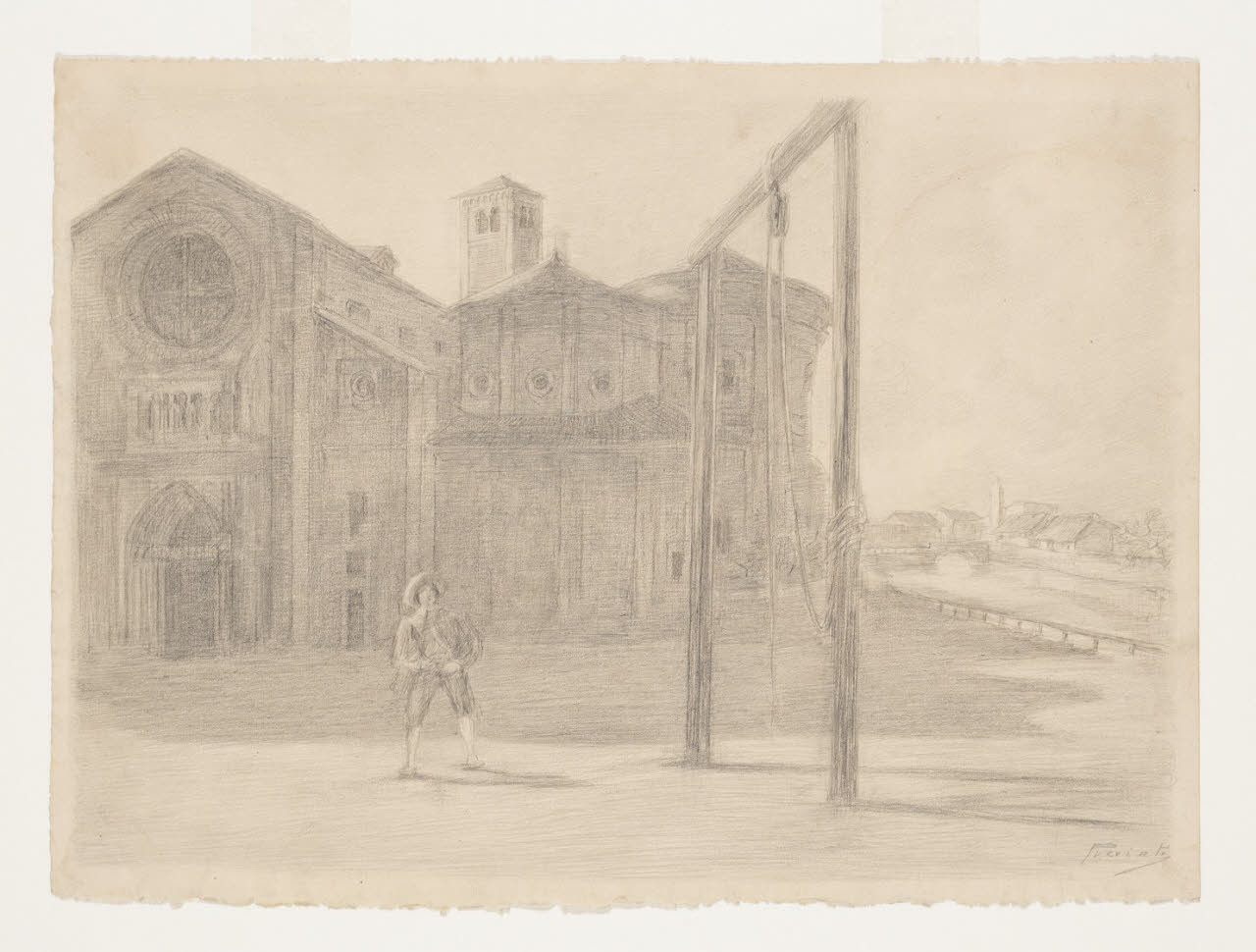 Renzo guarda la forca eretta in piazza San Marco - "Era uno di que' rimedi eccessivi e inefficaci de' quali (...) si faceva tanto scialacquìo". Illustrazione per i Promessi Sposi - Capitolo XXXIV