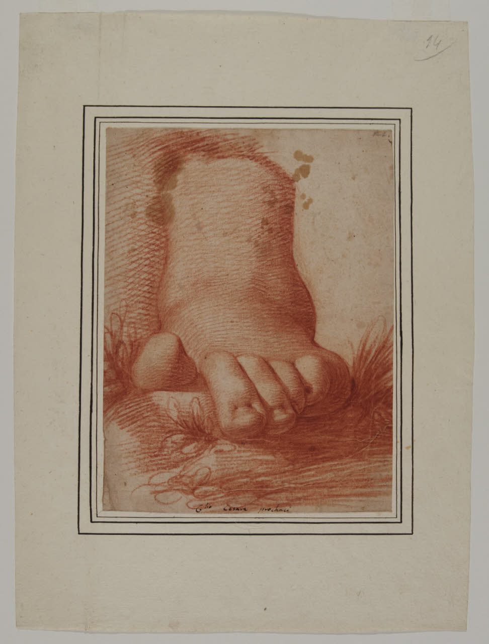 - NOTIZIE STORICO CRITICHE Appartenuto alla collezione Trivulzio, questo foglio con lo studio di un piede entrò nelle collezioni civiche nel 1943 con un'attribuzione a Giulio Cesare Procaccini. In anni più recenti, Neilson ha espunto questo disegno dal corpus dell'artista, derubricandolo a eseritazione accademica dell'ambito del Procaccini (cfr. Neilson 2004, p. 262).