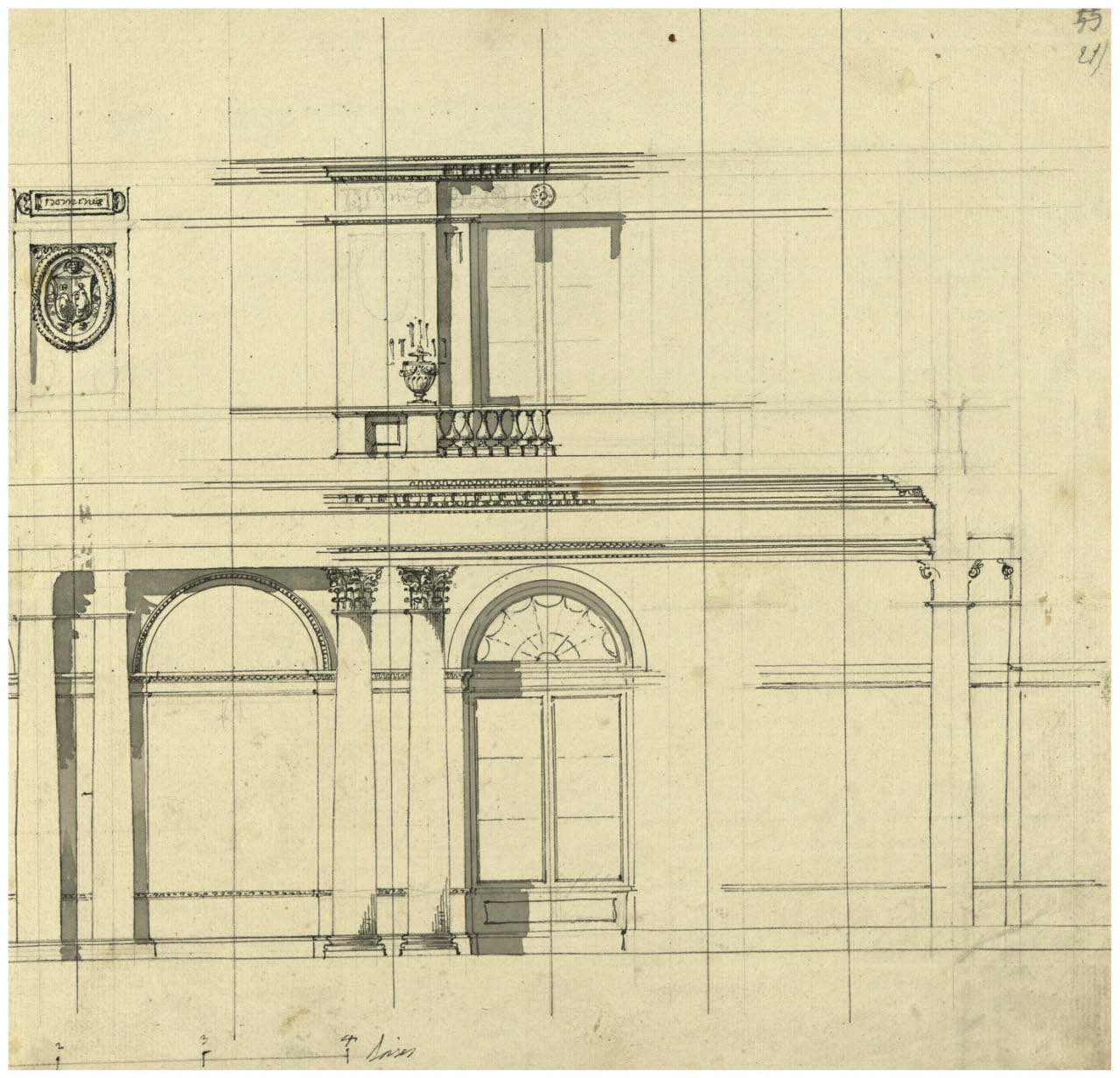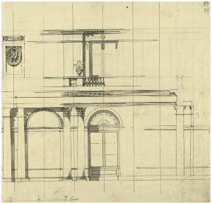 Decorazione architettonica per la Sala di San Giorgio dell'Ermitage. Sezione con vista frontale. Decorazione architettonica per la Sala di San Giorgio dell'Ermitage. Sezione con vista frontale