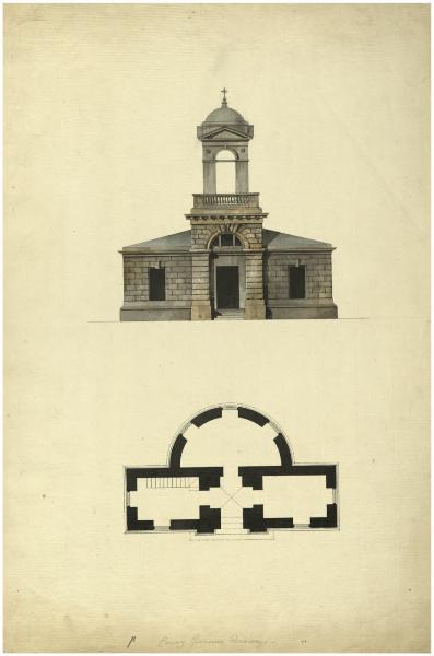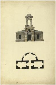 Campanile nel cimitero di Kazan' a Sofja (Carskoe Selo). Prospetto e pianta. Campanile nel cimitero di Kazan' a Sofja (Carskoe Selo). Prospetto e pianta