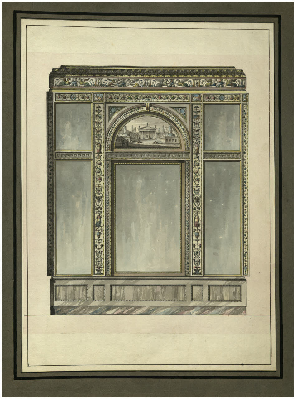 Decorazione per una parete del Gabinetto degli Specchi a Carskoe Selo. Prospetto. Decorazione per una parete del Gabinetto degli Specchi a Carskoe Selo. Prospetto